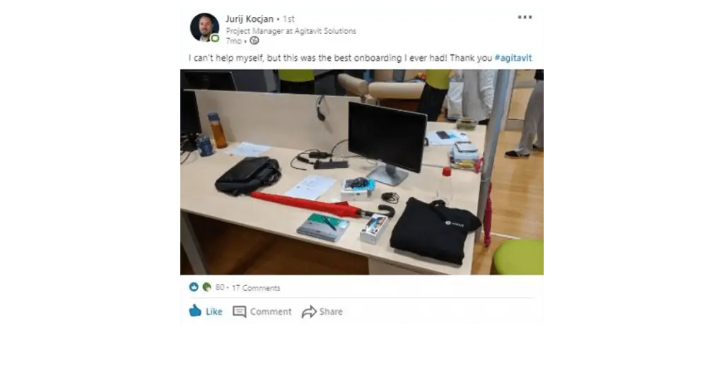 Iskreno priznam, da besede uvajanje (angl. Onboarding) niti nisem ne poznal, niti zanjo slišal. Sem pa na spletnih družbenih omrežjih opazoval, kako v nekaterih podjetjih razveselijo svoje novo zaposlene z drobnimi ali tudi večjimi pozornostmi. Ob tem sem si tudi sam želel, da bi prišel v podjetje, v katerem me ne bi posadili na stol in prepustili samega sebi. Kaj šele, da bi vedel, koga lahko povprašam za informacije, ki jih potrebujem za opravljanje dela. Takšne izkušnje sem imel v preteklih uvajanjih, dokler se nisem zaposlil v podjetju, v katerem trenutno razveseljujem svoje sodelavce.