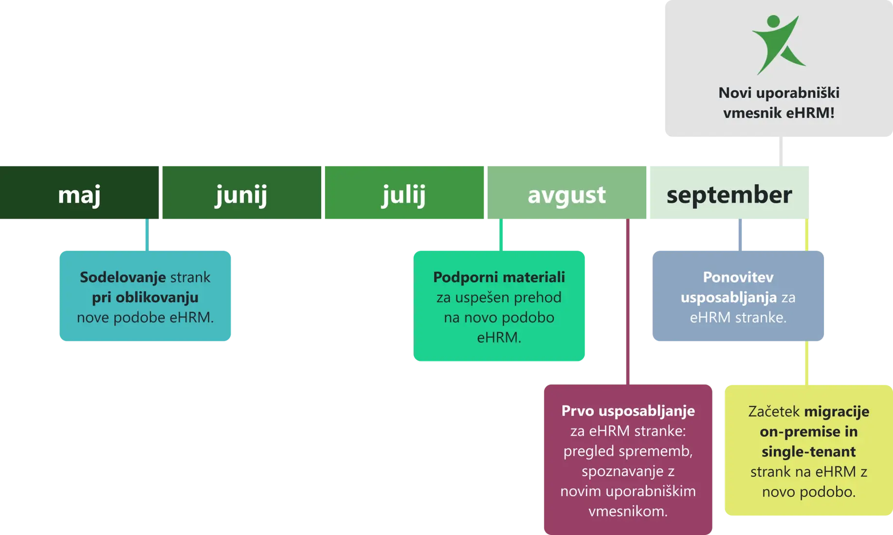 Pred prehodom na novo verzijo bomo pripravili podporne materiale, ki jih boste lahko delili z ostalimi deležniki v vašem podjetju.